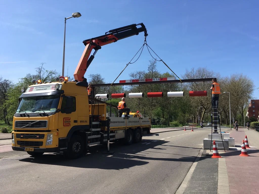Ons Technisch Servicebedrijf heeft afgelopen week een spoedklus mogen uitvoeren. We hebben twee tijdelijke hoogtebegrenzers geleverd en geplaatst om vrachtverkeer te weren bij een brug in slechte staat.
