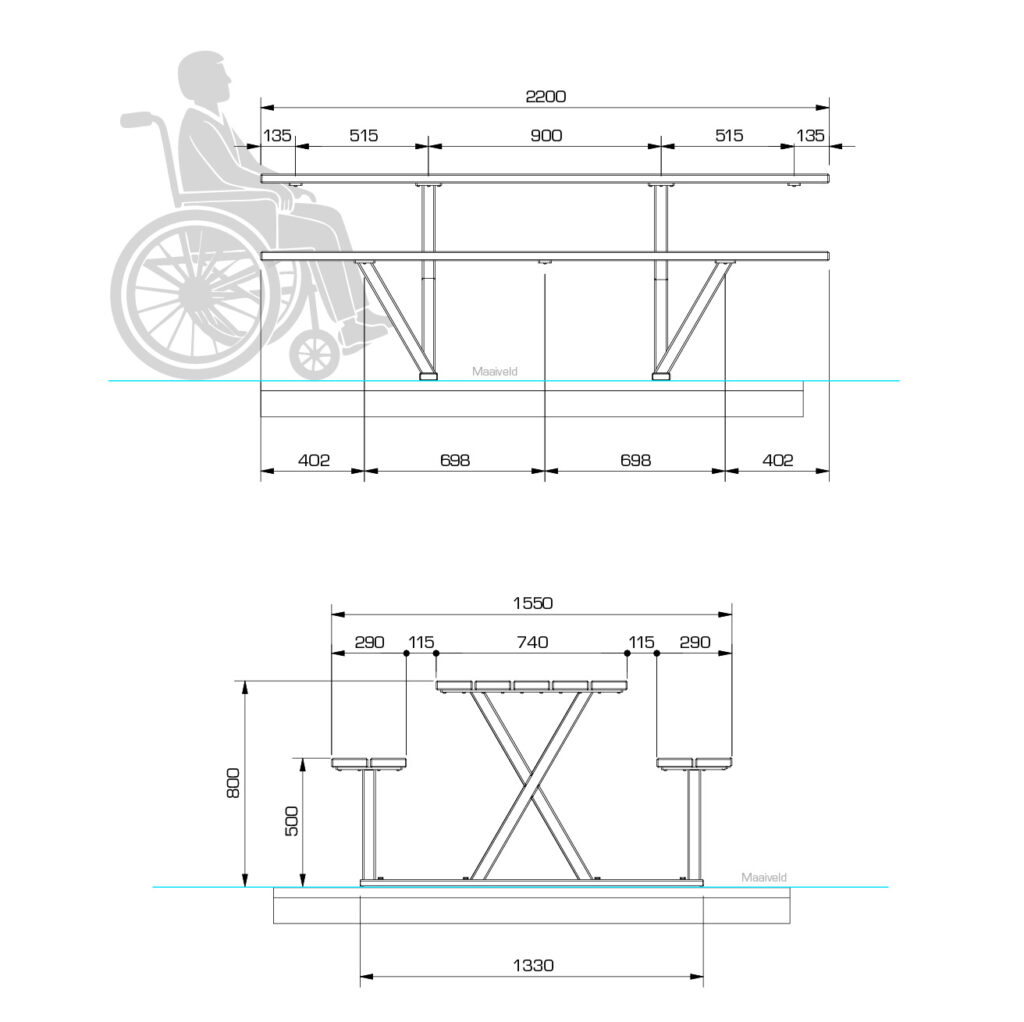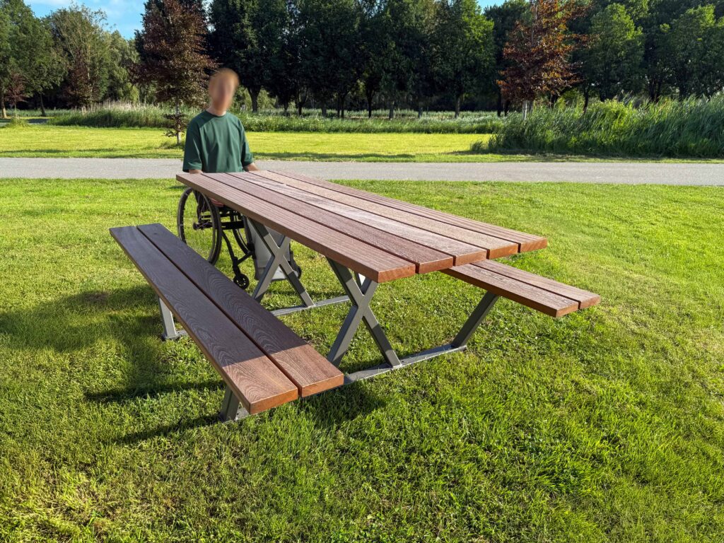 De picknickset model Next combineert een strak, modern ontwerp met uitmuntende functionaliteit. Ontworpen om zowel esthetisch als praktisch te zijn, is deze robuuste en duurzame picknickset de perfecte aanvulling op iedere buitenruimte, of het nu een park, schoolplein, bedrijventerrein of tuin betreft. De picknickset is toegankelijk voor mobiliteitshulpmiddelen zoals een rolstoel.
