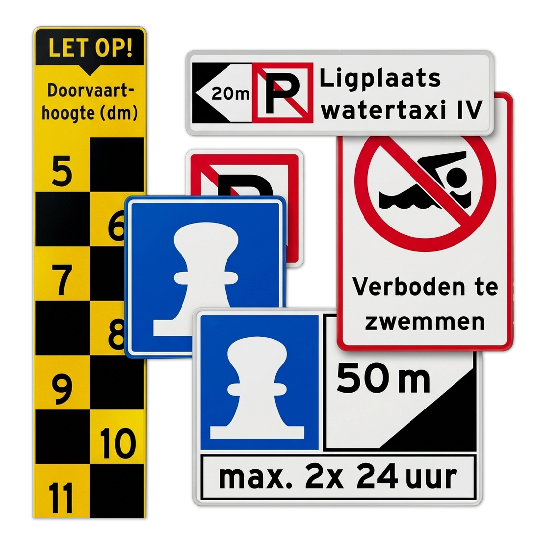 Erdi levert een volledig assortiment verkeersborden, waaronder RVV-borden (A- tot en met BB-serie), straatnaamborden, scheepvaartsborden, figuratieborden en ISO 7010-veiligheidsborden. Ook maatwerk is mogelijk.