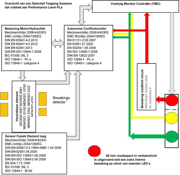 Deze hoogste veiligheidsklasse vereist een doorrekening welke uitsluitend te maken is met veiligheidscomponenten welke gecertificeerd zijn door een Notified Body en aan het vereiste SIL niveau voldoet. De Voertuig Monitor Controller kan in dit geval gehandhaafd blijven zodat de procesafwikkeling standaard blijft.